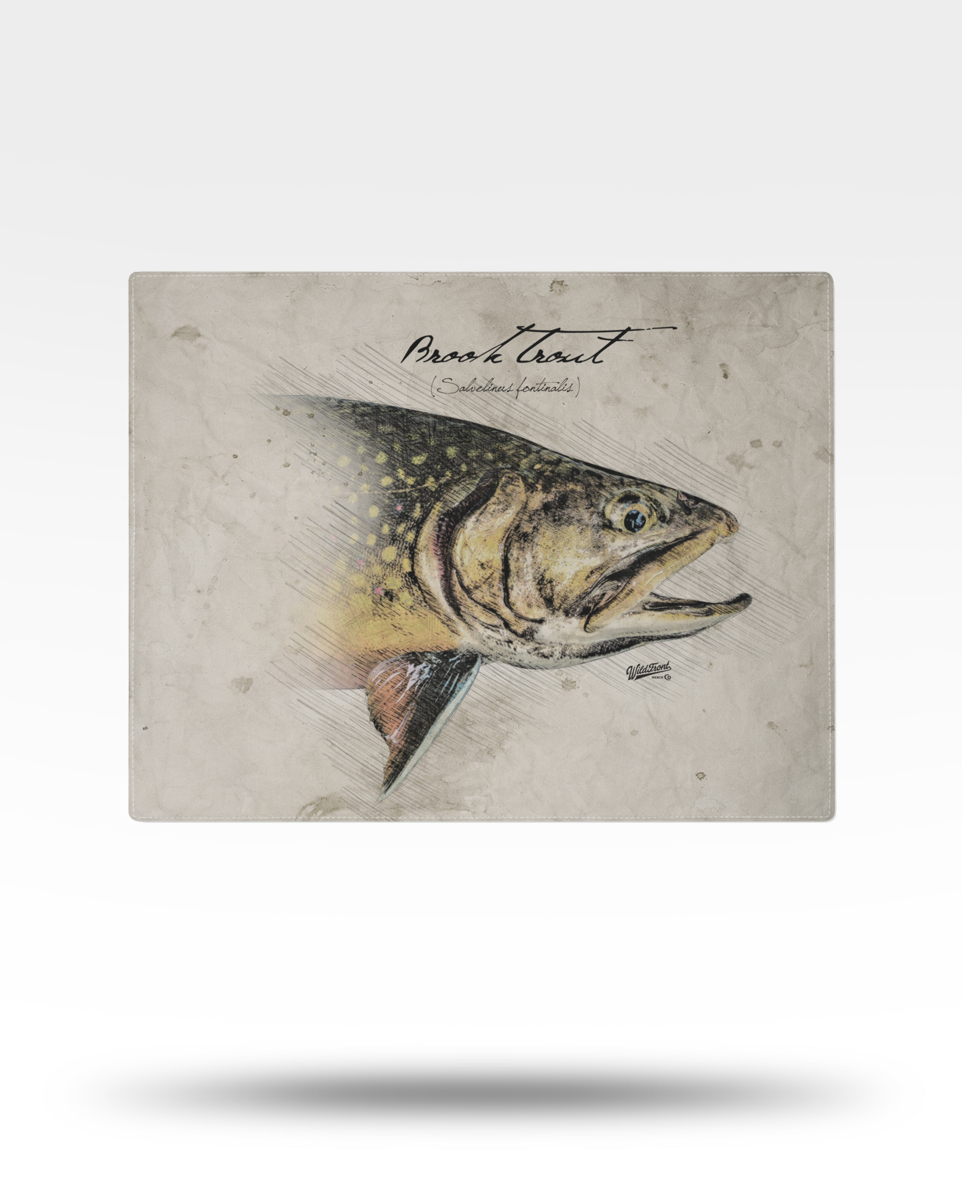 - One-sided printed design featuring brook trout sketch